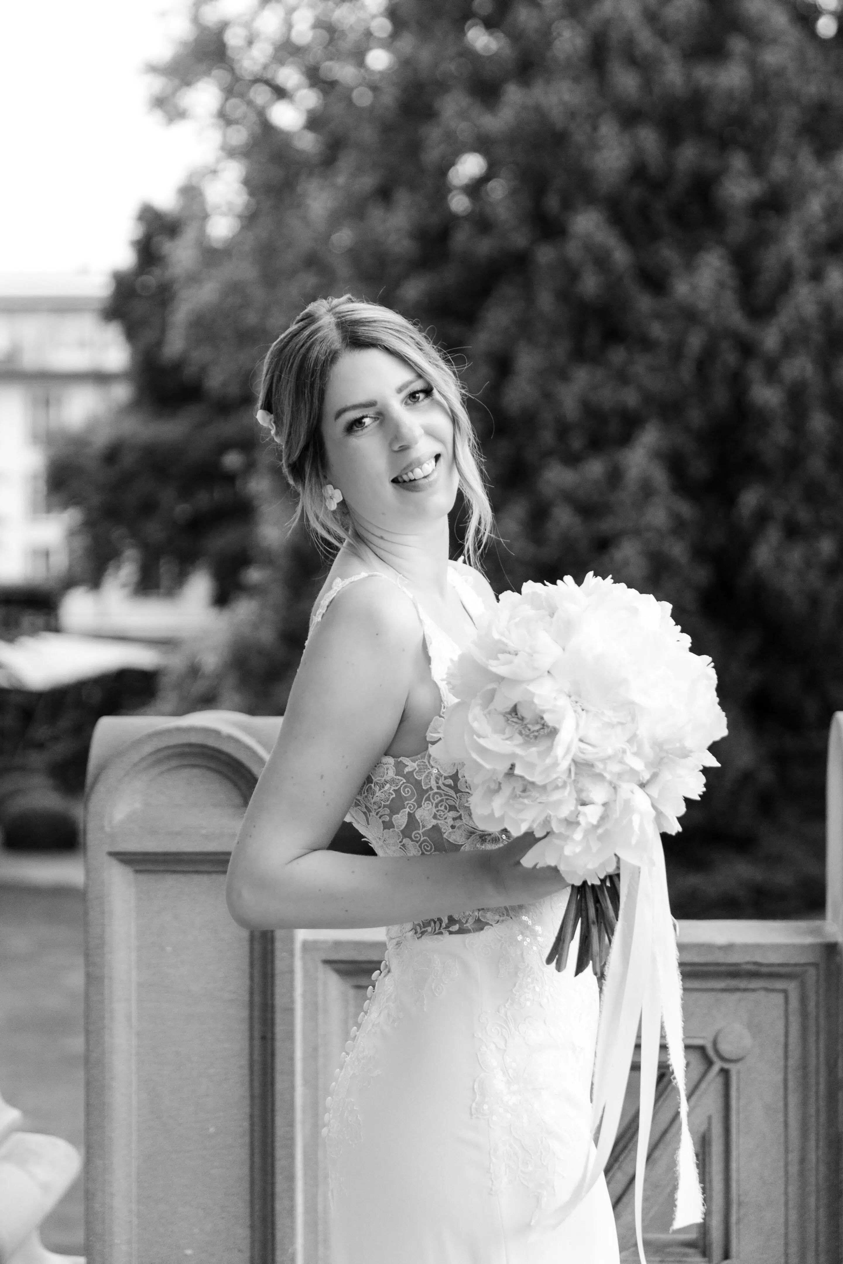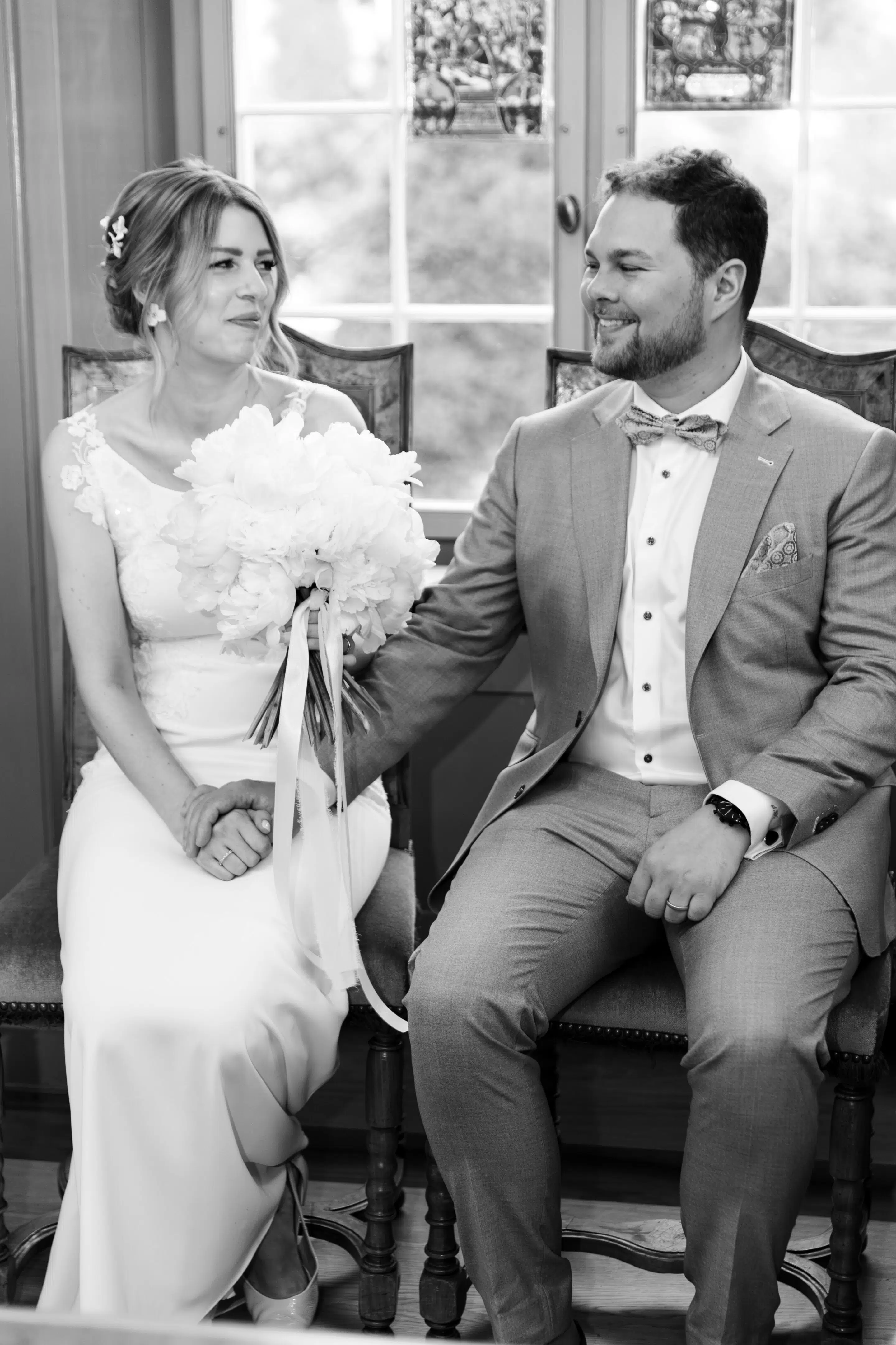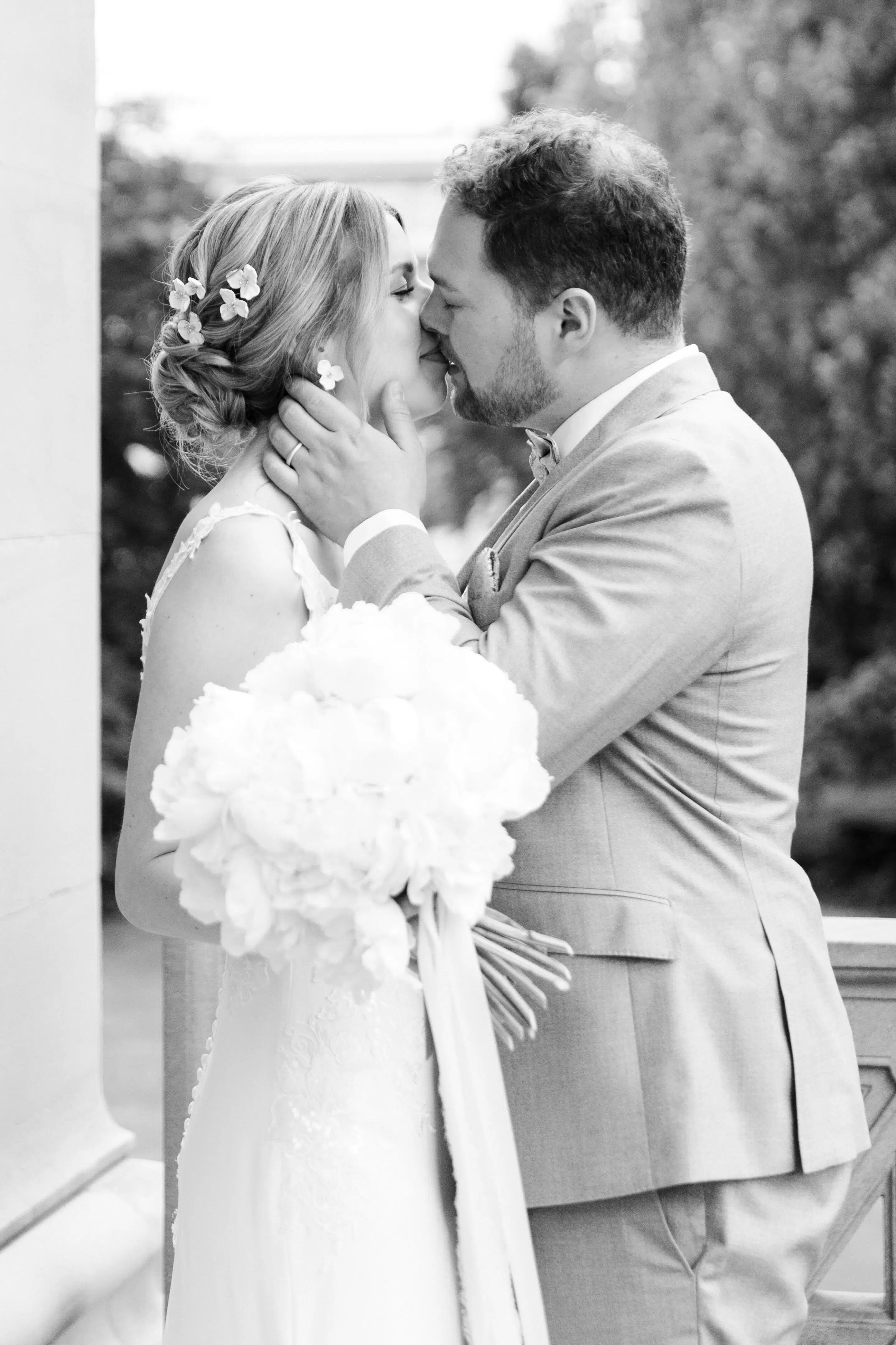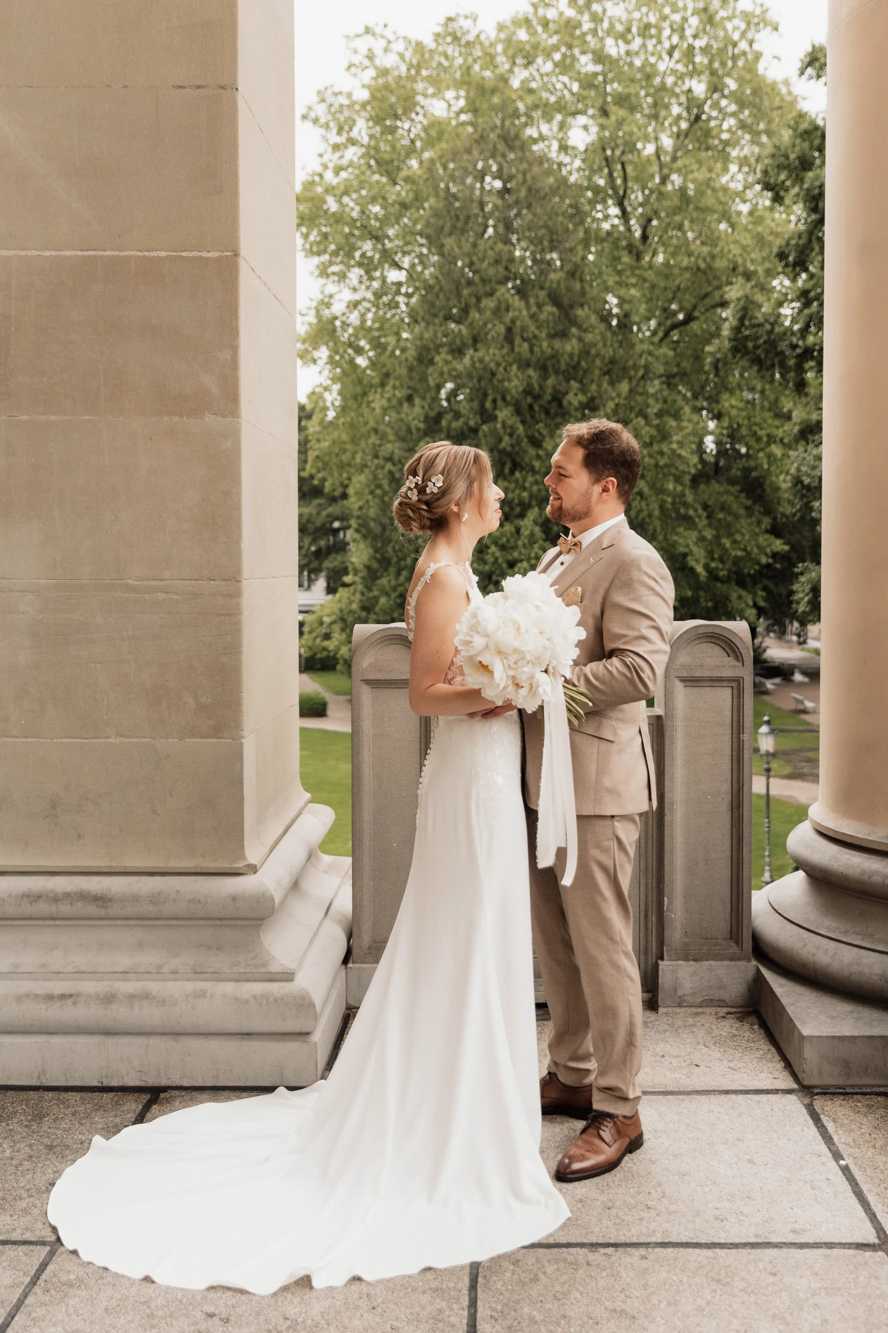 Nach dem Getting Ready war die standesamtliche Hochzeit in der Villa Lindengut in Winterthur und auch dort ist die Liebe geströmt. Natürlich zwischen Claudia & Simon, aber auch wieder in den Details. So haben die Familie und Freunde von den beiden einen wunderschönen Spalier mit weissen Blumen gemacht nach der standesamtlichen Trauung.