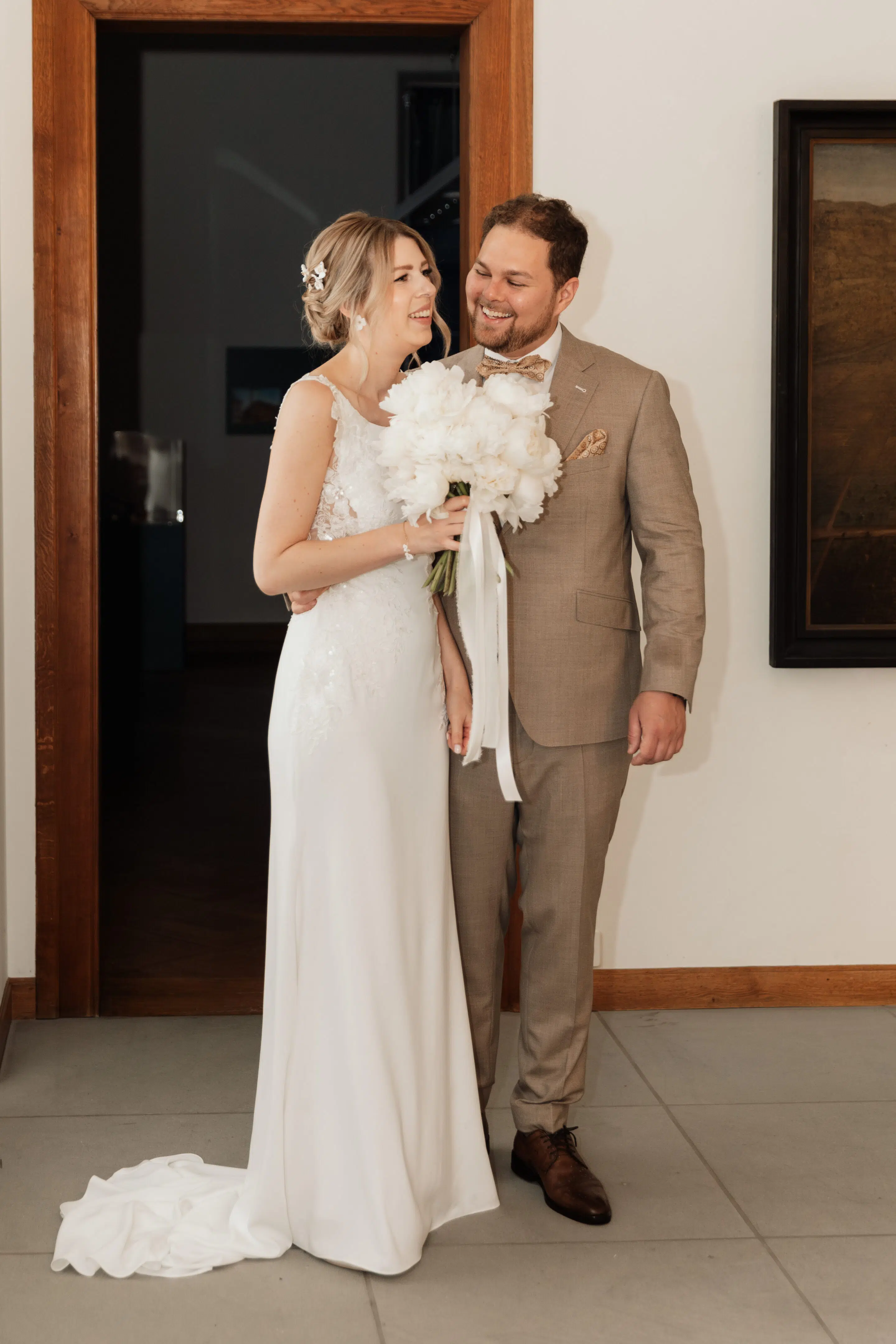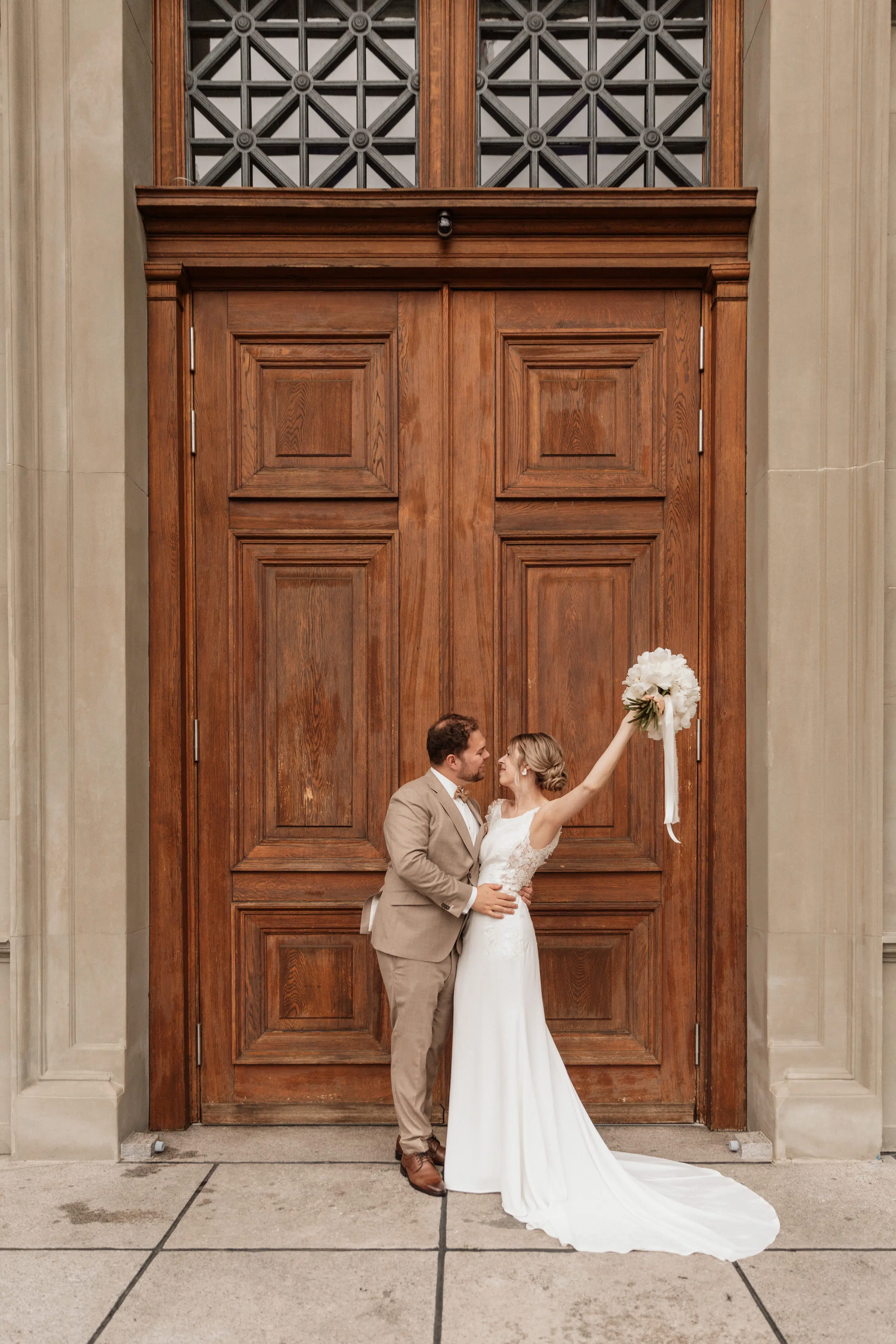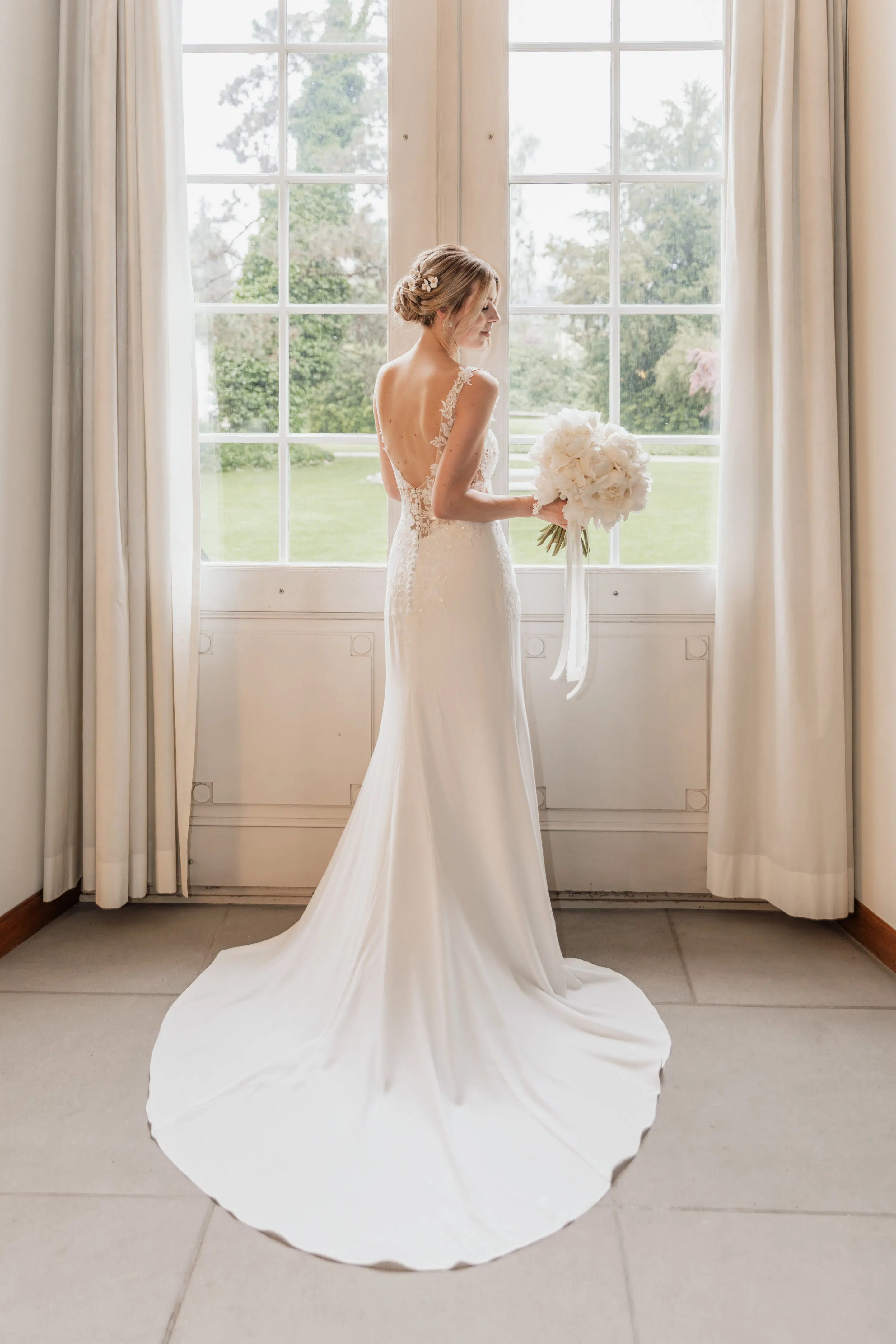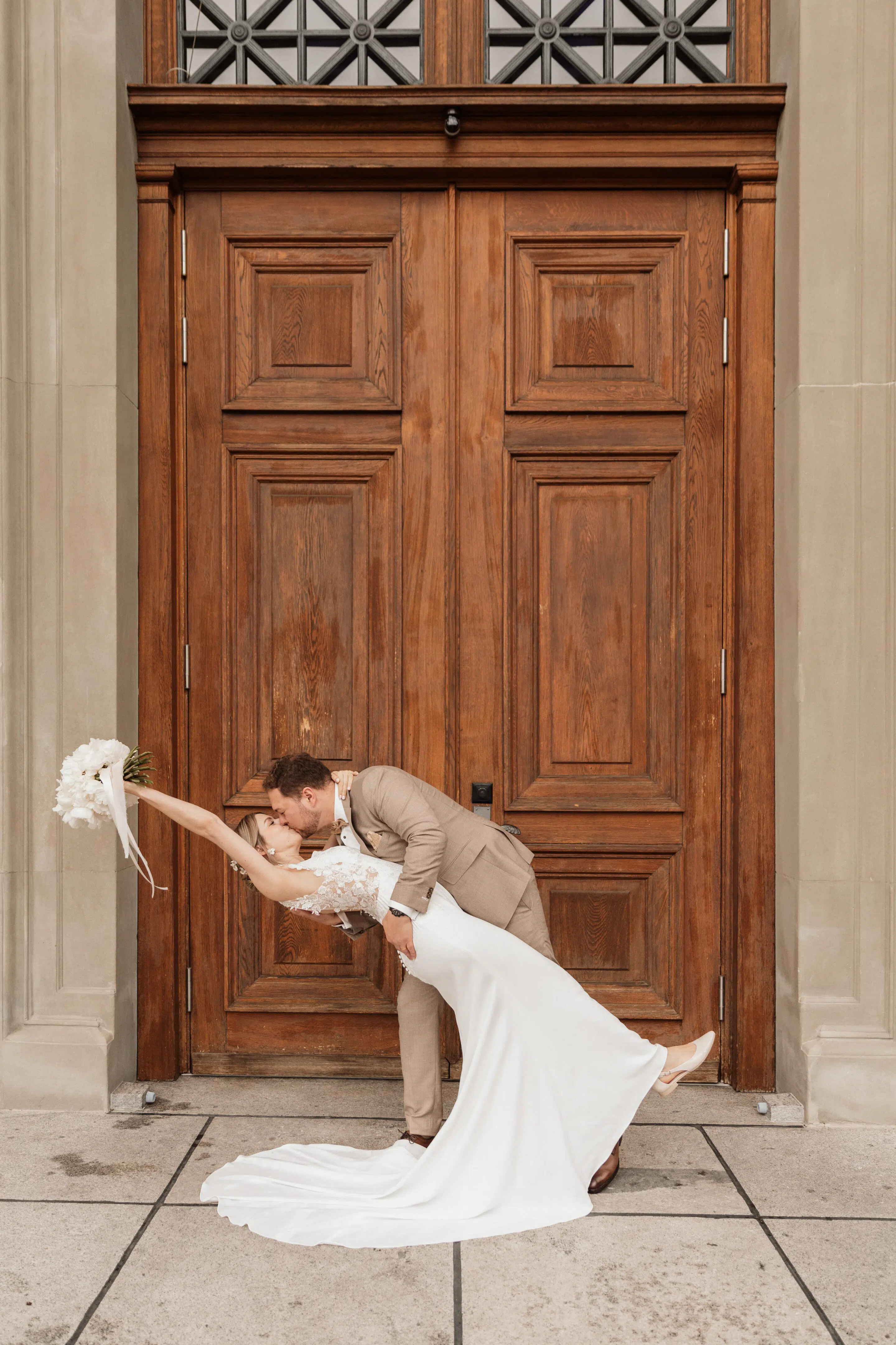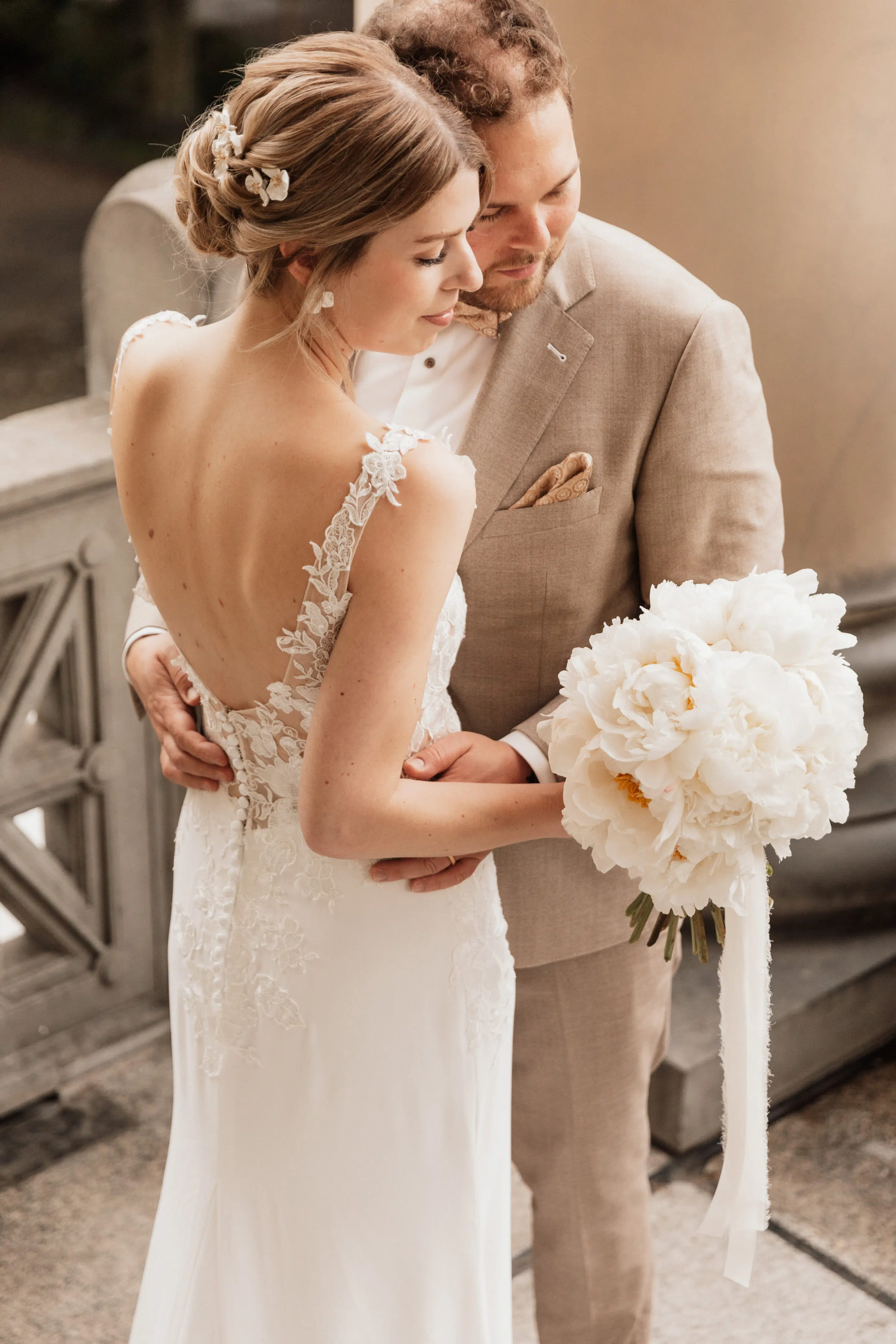 Nach dem Getting Ready war die standesamtliche Hochzeit in der Villa Lindengut in Winterthur und auch dort ist die Liebe geströmt. Natürlich zwischen Claudia & Simon, aber auch wieder in den Details. So haben die Familie und Freunde von den beiden einen wunderschönen Spalier mit weissen Blumen gemacht nach der standesamtlichen Trauung.